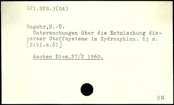 Untersuchungen über die Entmischung disperser StoffSysteme im Hydrozyklon.
