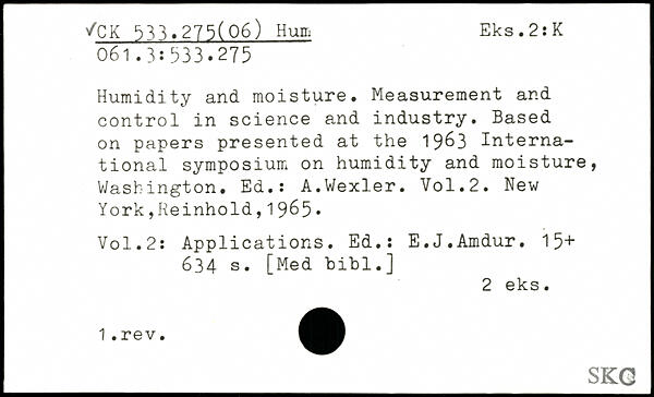 Humidity and moisture. Measurement and control in science and industry. Based on papers presented at the 1963 International symposium on humidity and moisture, Washington. Ed.: A.Wexler.