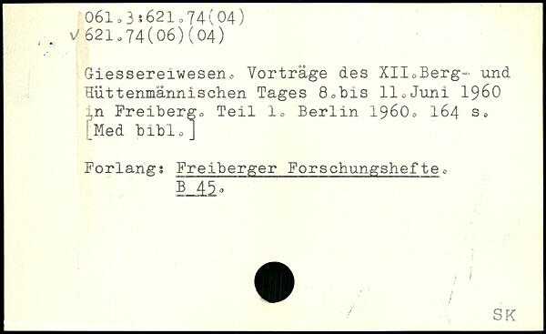 Giessereiweseno Vorträge des XIIoBerg- und Hüttenmännischen Tages 8obis 11,Juni 1960 :Tn Freibergo Teil h