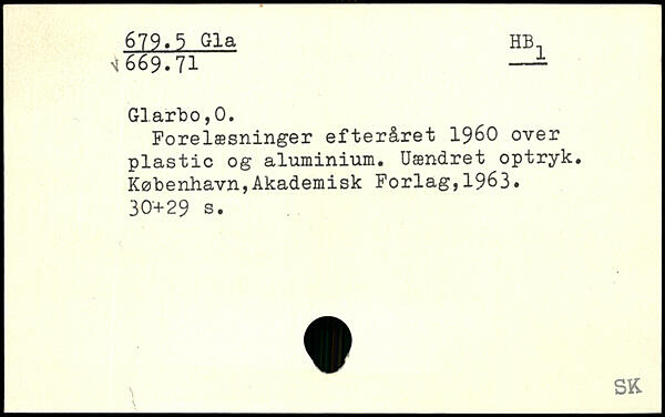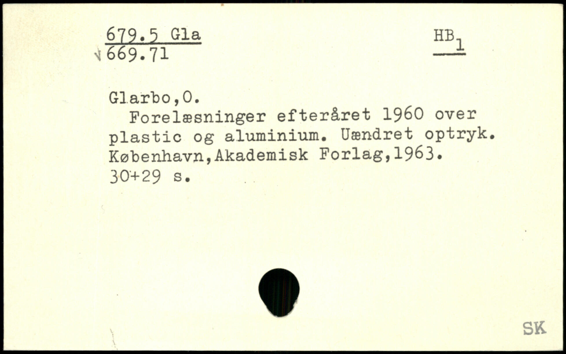 GI ar "bo, 0. Forelæsninger efteråret 1960 over plastic og aluminium. Uændret optryk.