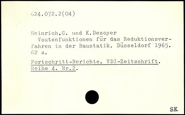 Voutenfunktionen für das Reduktionsverfahren in der Baustatik. Düsseldorf 1965.