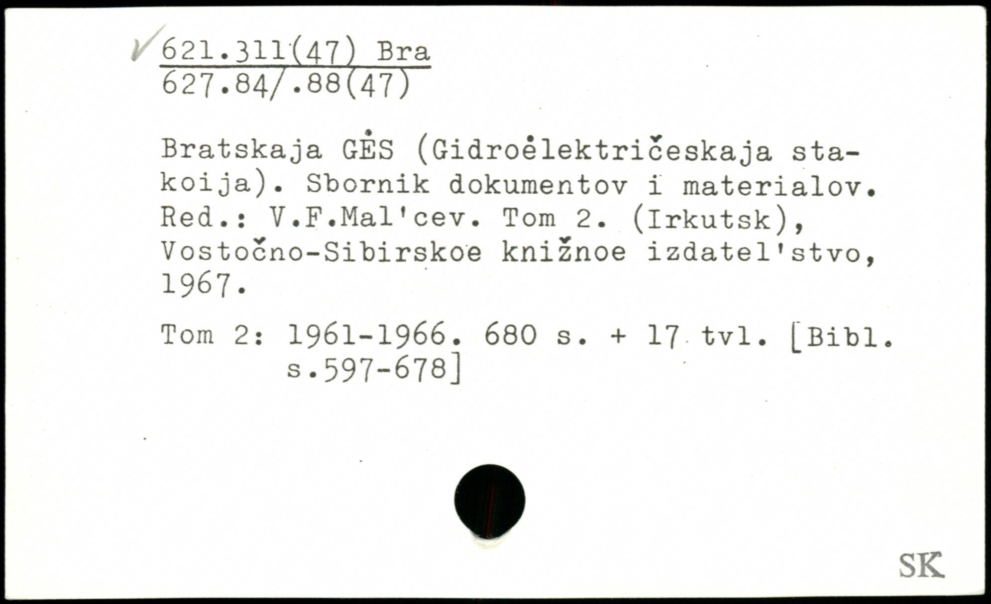 Bratskaja GES (Gidroêlektriceskaja sta-koija). Sbornik dokumentov i materialov. Red.: V.F.Mal’cev. Tom 2. (Irkutsk), Vostocno-Sibirskoe kniznoe izdatel’stvo, 1967. Tom 2: 1961-1966.