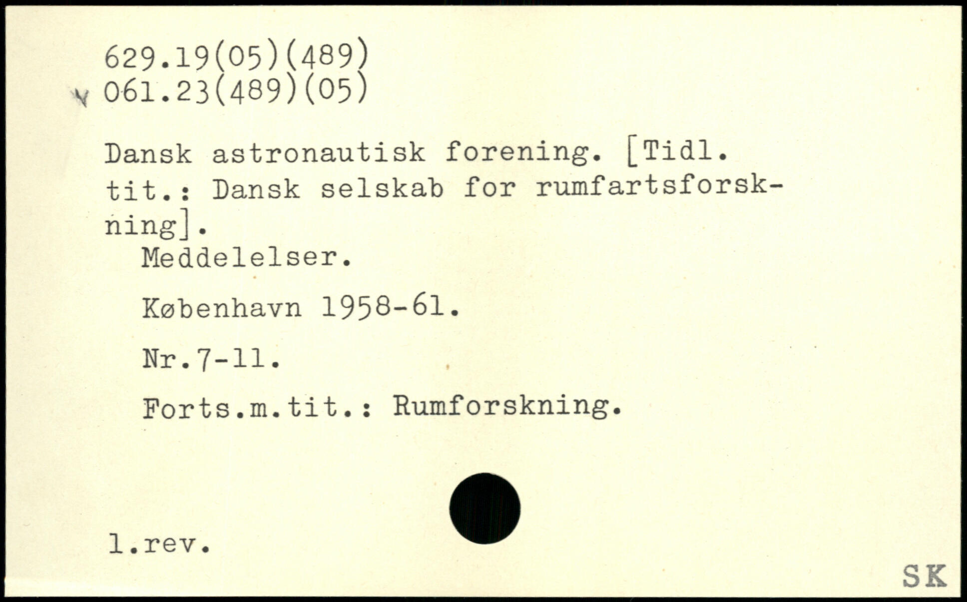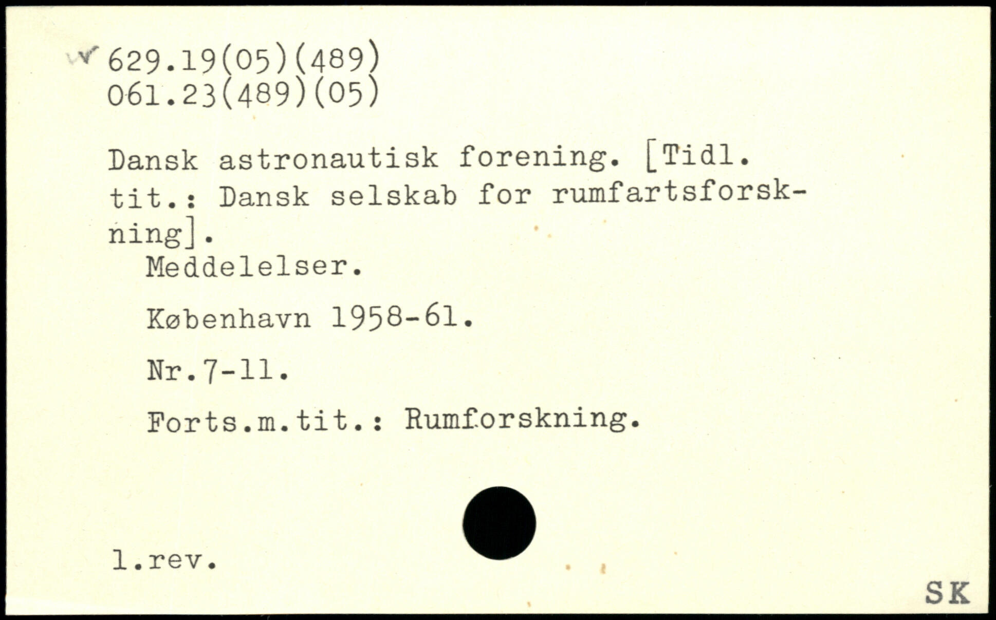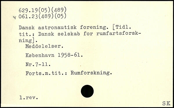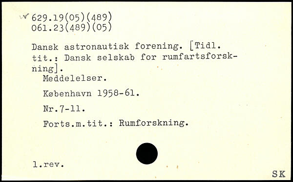 Dansk astronautisk forening. [Tidl. tit.: Dansk selskab for rumfartsforsk-ning]. Meddelelser.
