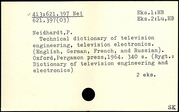 Technical dictionary of television engineering, television electronics. (English, German, French, and Russian).