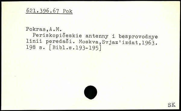 Periskopiceskie antenny i besprovodnye linii peredaci. Moskva,Svjaz’izdat,1963.
