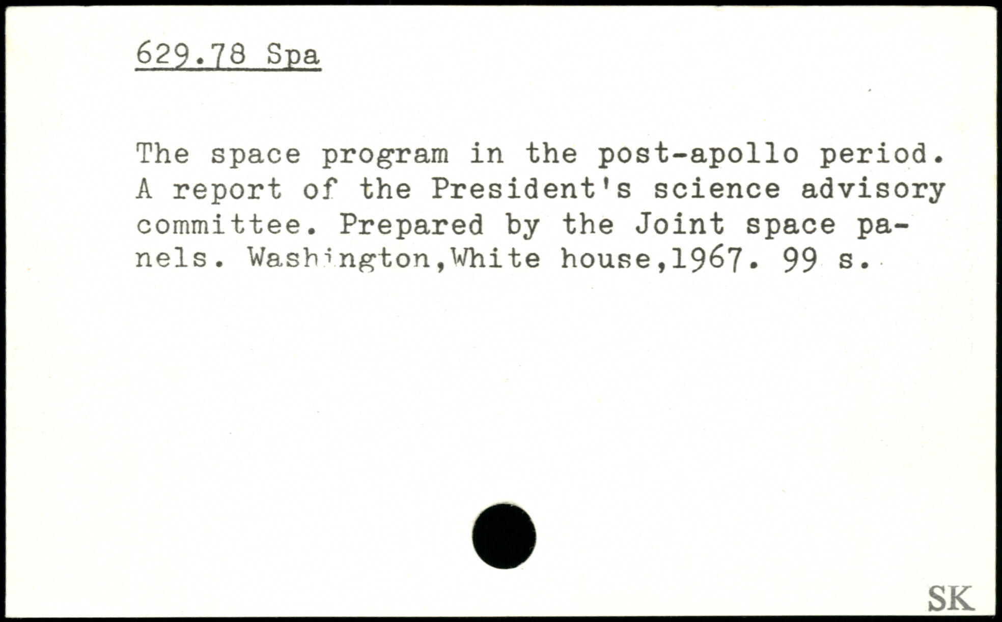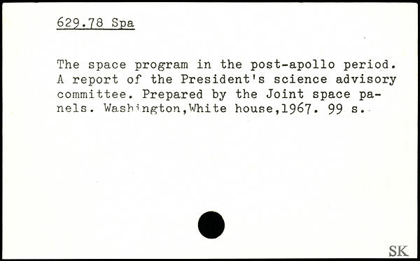 The space program in the post-apollo period. A report of the President's science advisory committee. Prepared by the Joint space panels. Wash->ngton,Vhite house, 1967.