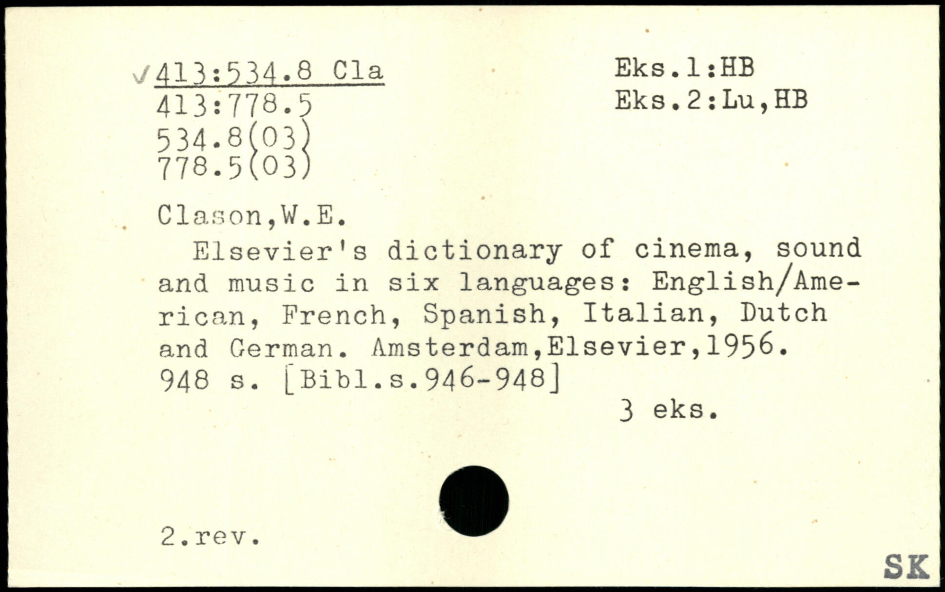 Elsevier’s dictionary of cinema, sound and music in six languages: English/Ame-rican, French, Spanish, Italian, Dutch and German.