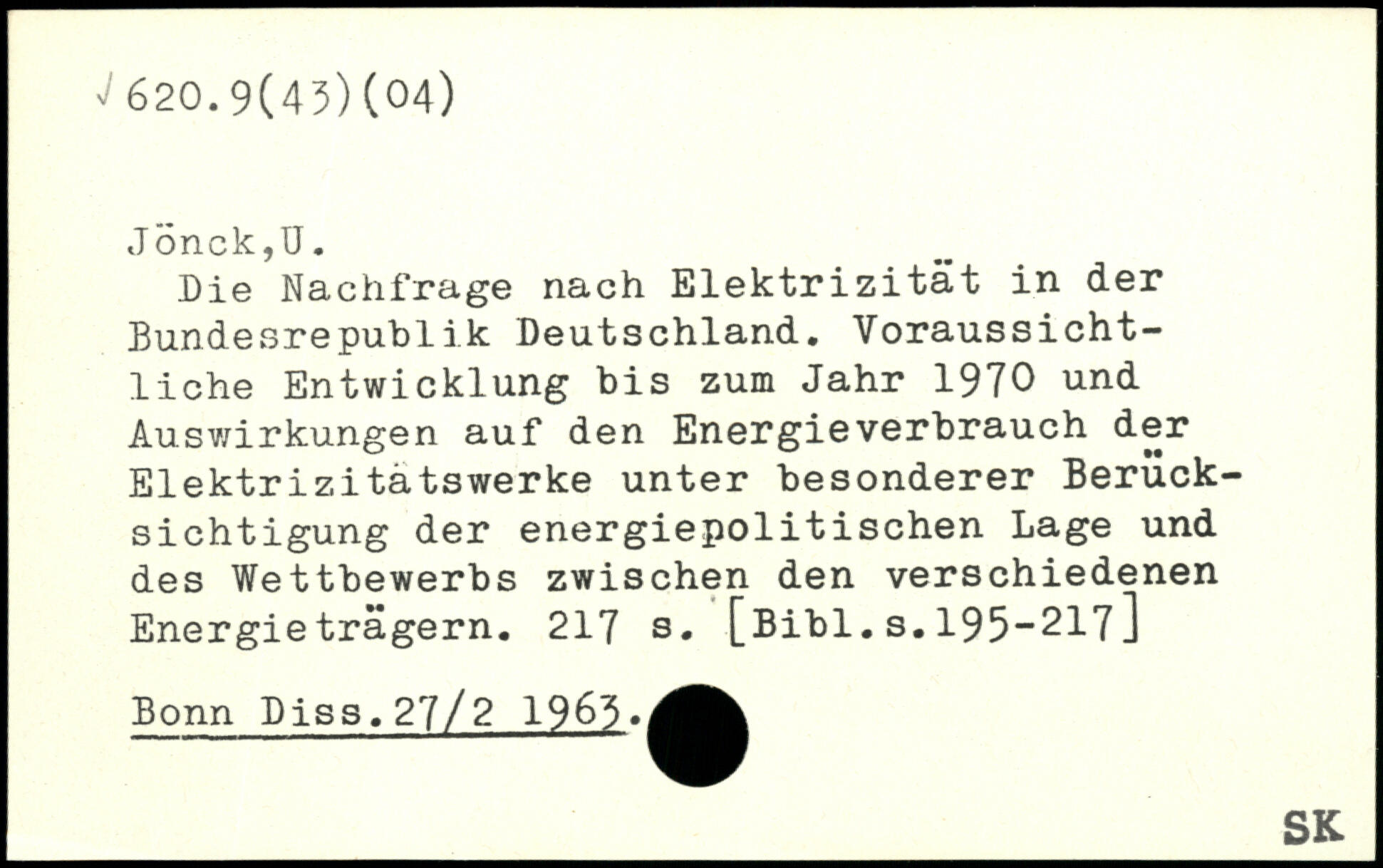 Die Nachfrage nach Elektrizität in der Bundesrepublik Deutschland. Voraussichtliche Entwicklung bis zum Jahr 1970 und Auswirkungen auf den Energieverbrauch der Elektrizitätswerke unter besonderer Berücksichtigung der energiepolitischen Lage und des Wettbewerbs zwischen den verschiedenen Energieträgern.