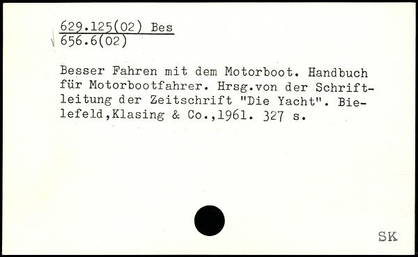 Besser Fahren mit dem Motorboot. Handbuch für Motorbootfahrer. Hrsg.von der Schriftleitung der Zeitschrift "Die Yacht”.