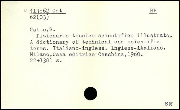 Dizionario tecnico scientifico illustrato. A dictionary of technical and scientific terms,. Italiano-inglese.