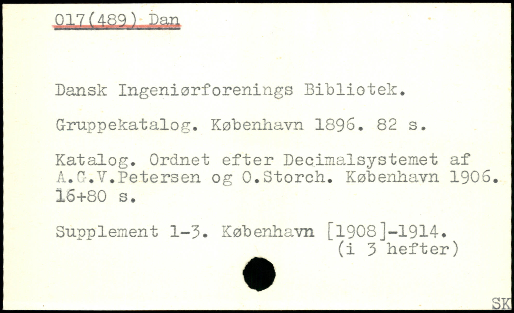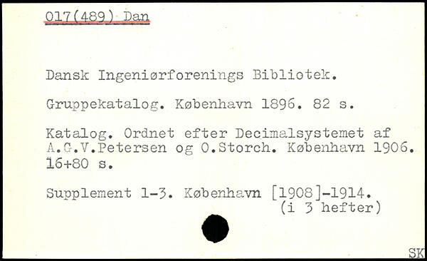 Dansk Ingeniørforenings Bibliotek. Gruppekatalog.