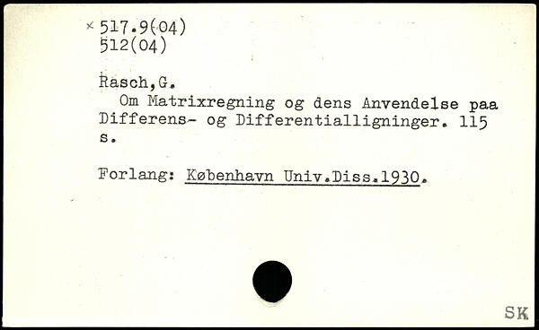 Om Matrixregning og dens Anvendelse paa Differens- og Differentialligninger.