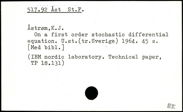 On a first order stochastic differential equation. TJ.st.(tr.Sverige) 19^4