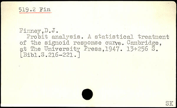 Probit analysis. A statistical treatment of the sigmoid response cuive. Cambridge, at The University Press,1947.
