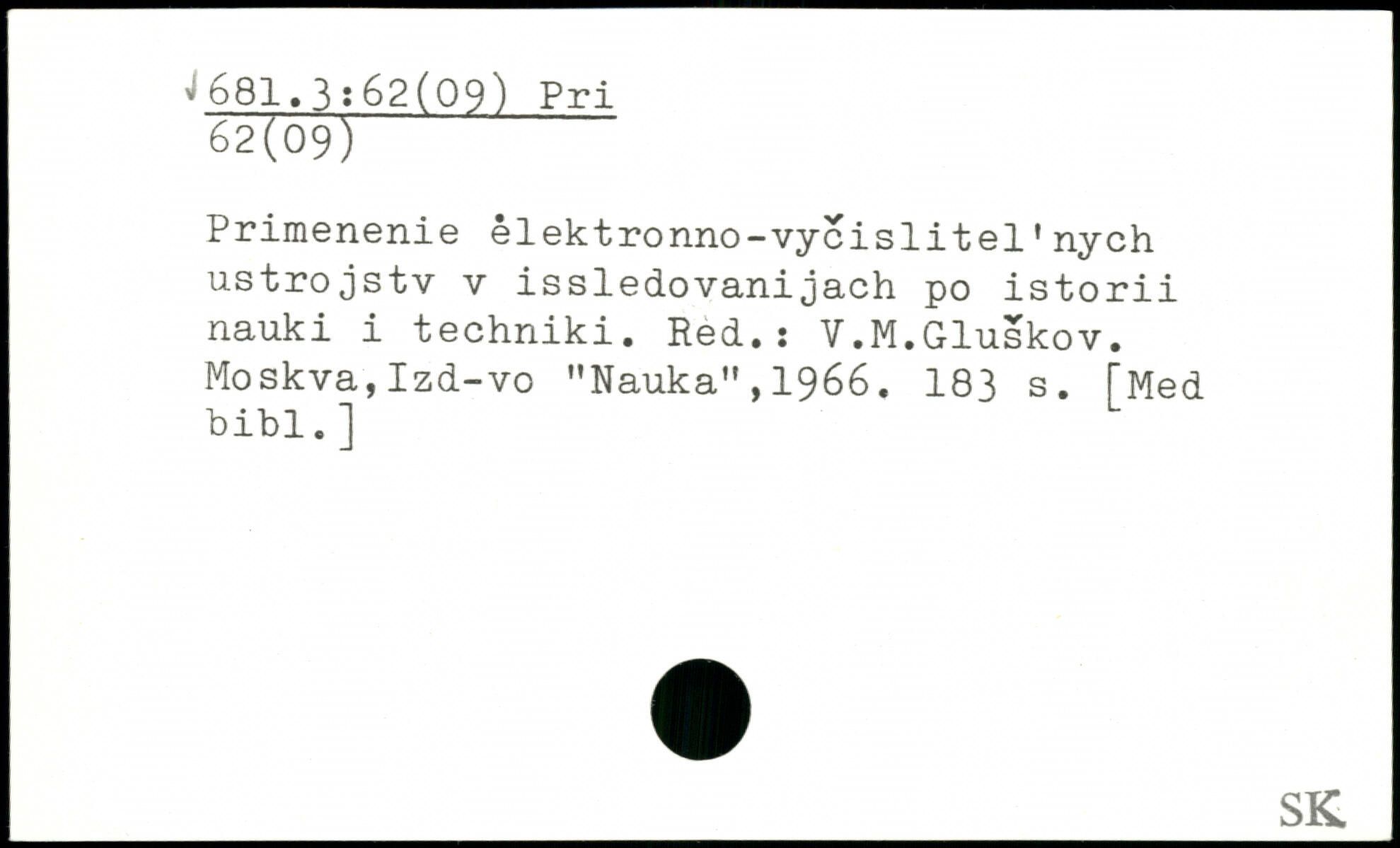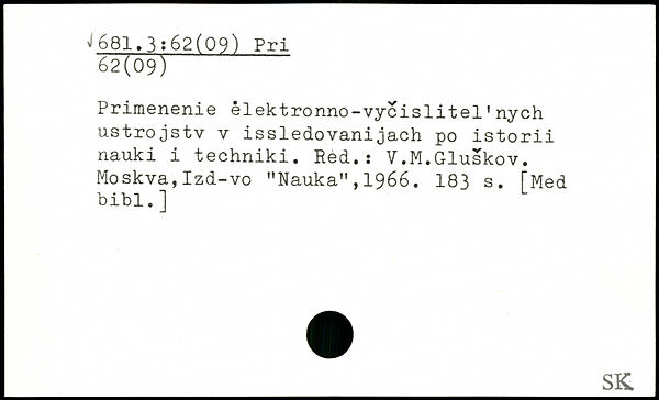 Primenenie êlektronno-vycislitel'nych ustrojstv v issledovanijach po istorii nauki i techniki. Red.: V.M.Gluskov. Moskva,Izd-vo "Nauka",1966.