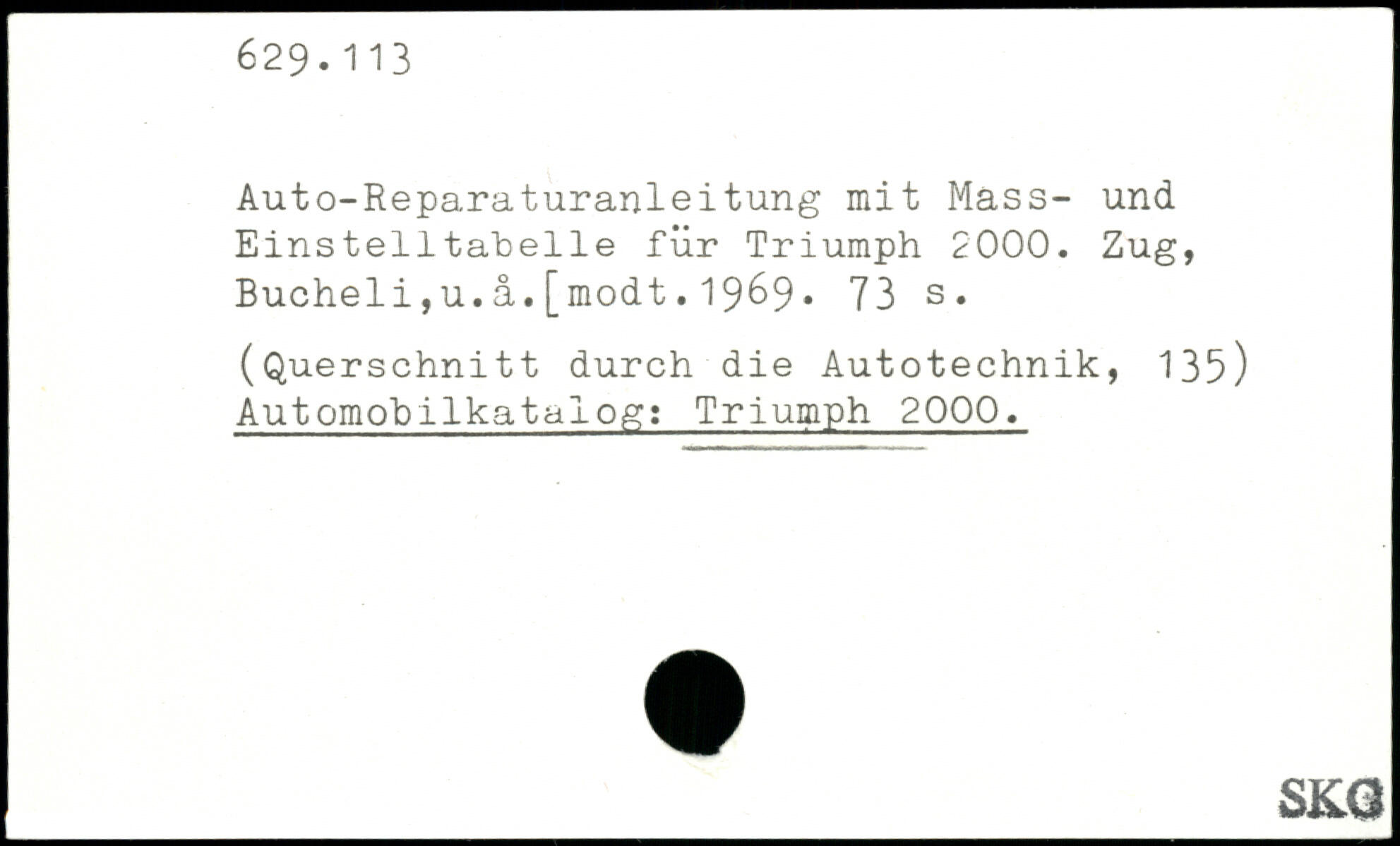 Auto-Reparaturanleitung mit Mass- und Einsteiltahelle für Triumph 2000. Zug, Bucheli,u.ä.[modt.1969.