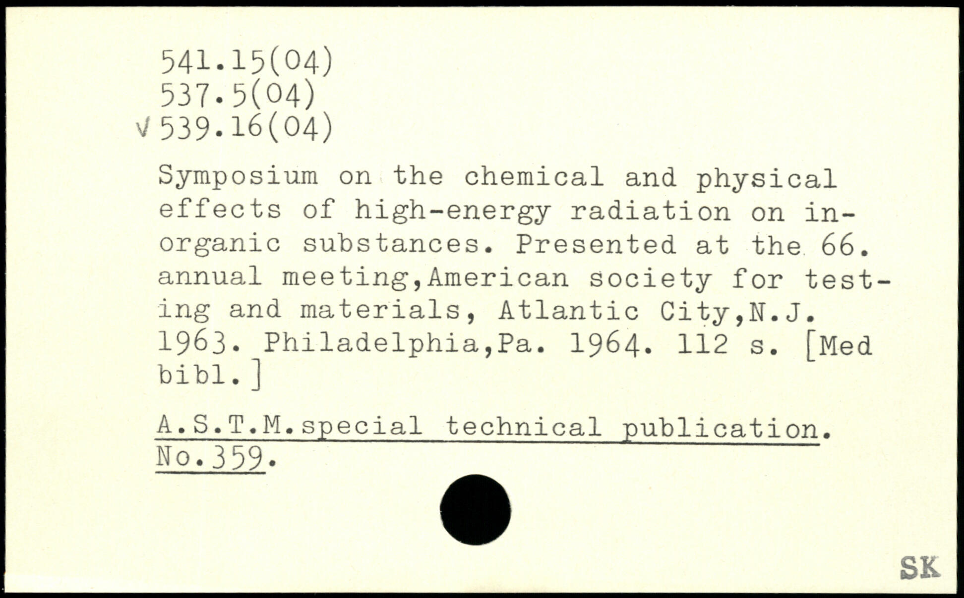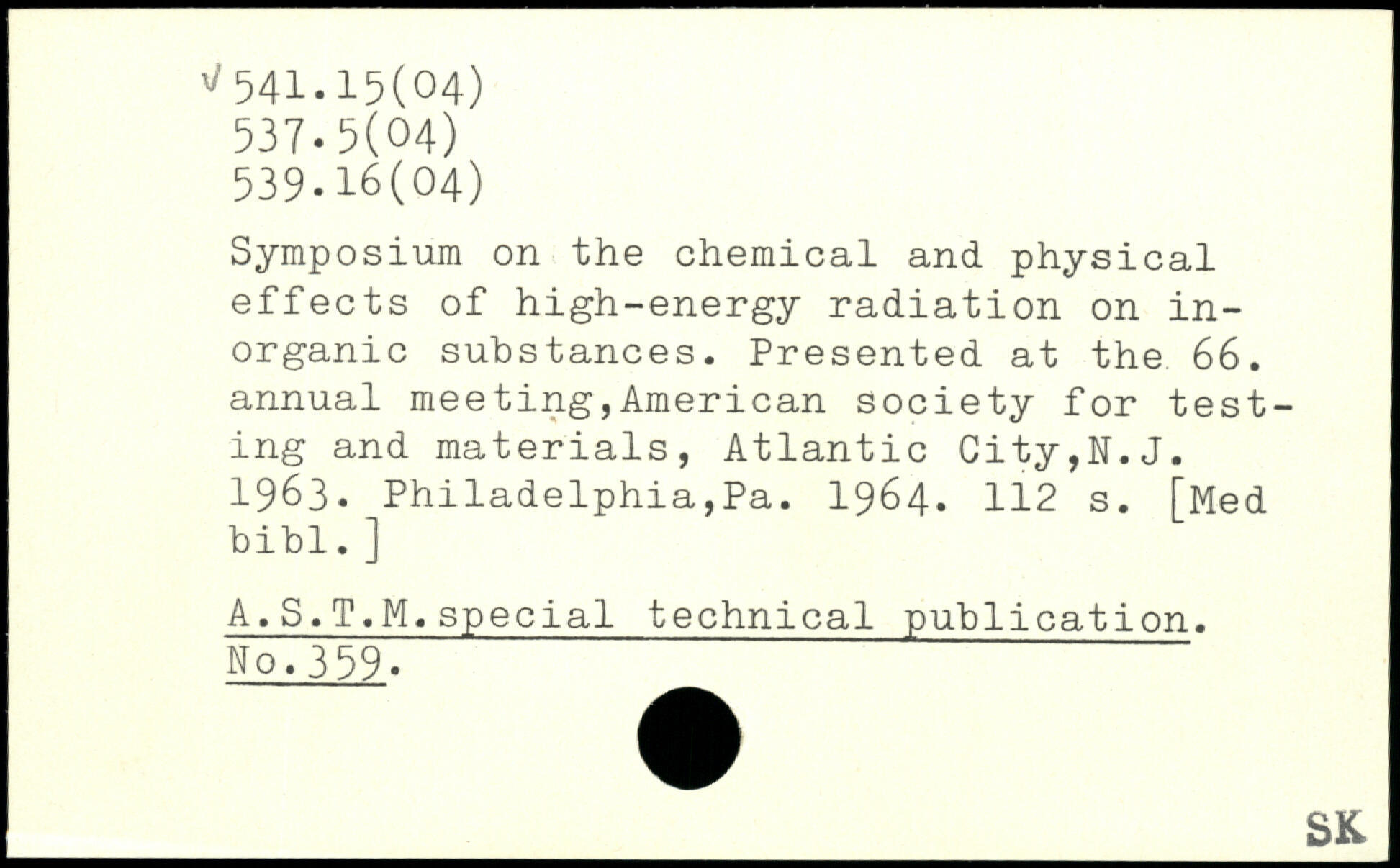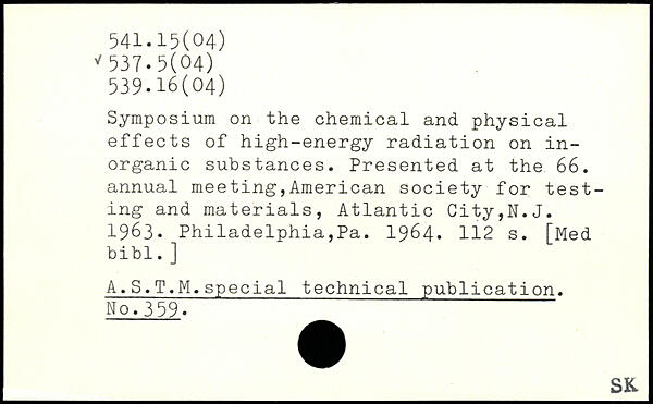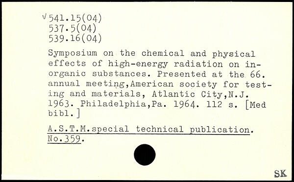 Symposium on the chemical and physical effects of high-energy radiation on inorganic substances. Presented at the 66. annual meeting,American society for testing and materials, Atlantic City,N.J. 1963. Philadelphia,Pa. 1964