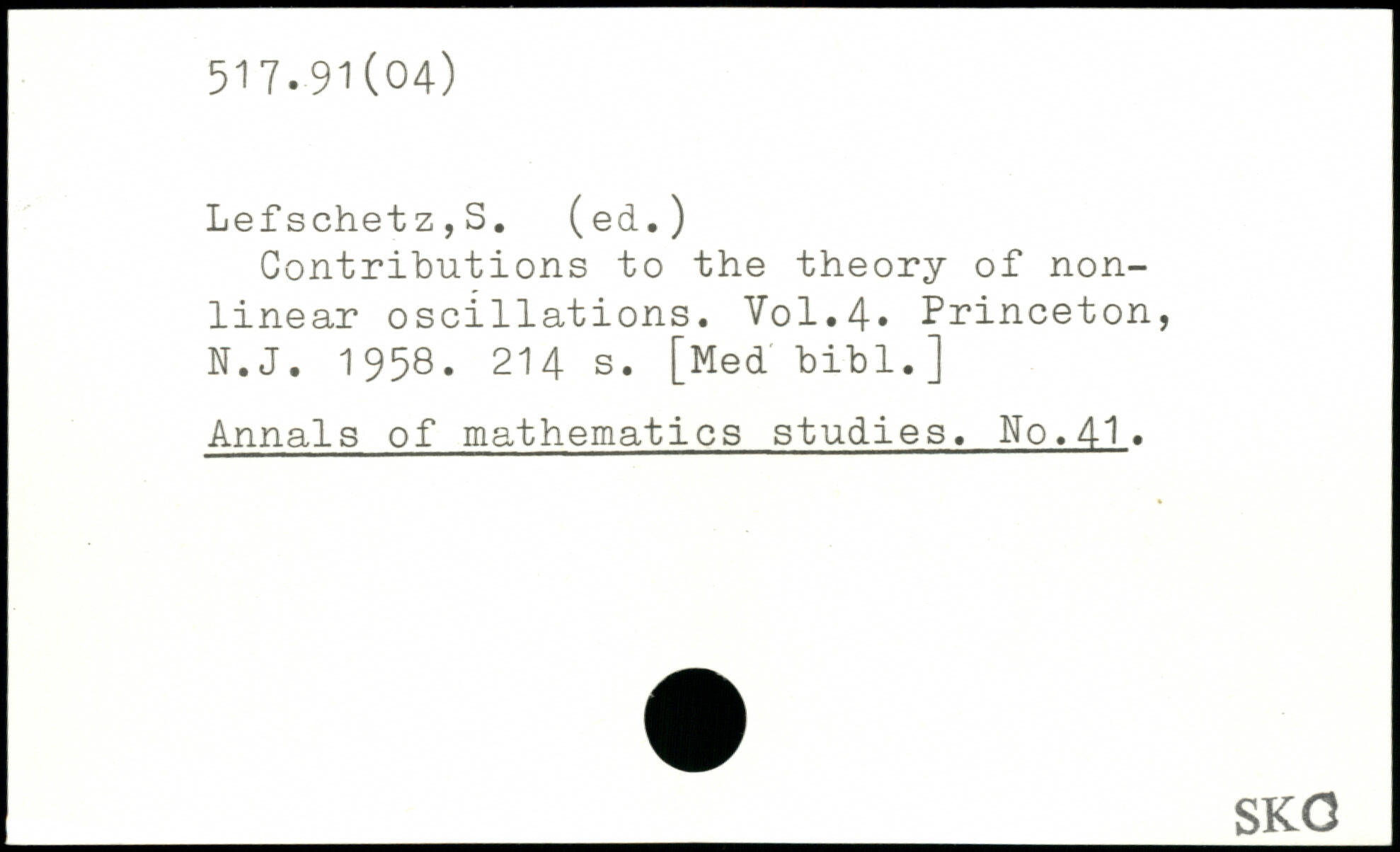 Contributions to the theory of nonlinear oscillations.