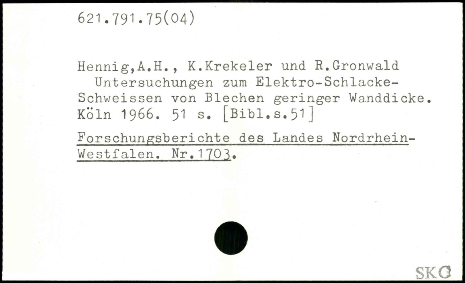 HennigjA.H., K.Krekeler und R.Gronwald Untersuchungen zum Elektro-Schlacke-Schweissen von Blechen geringer Wanddicke.