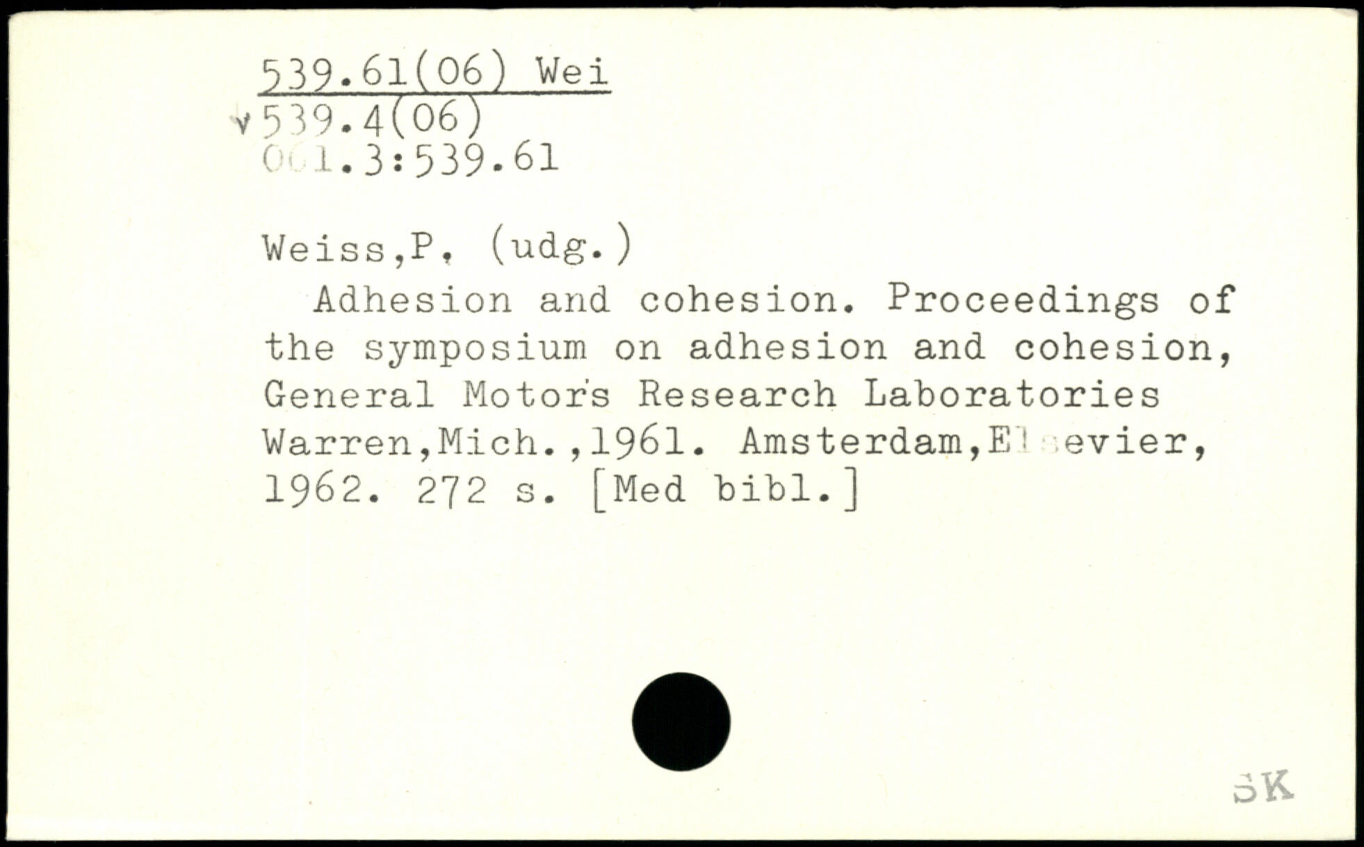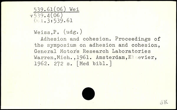Weiss,P, (udg.) Adhesion and cohesion. Proceedings of the symposium on adhesion and cohesion, General Motor's