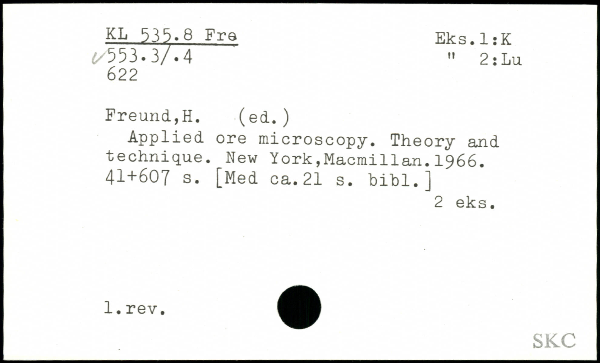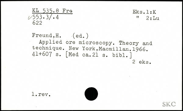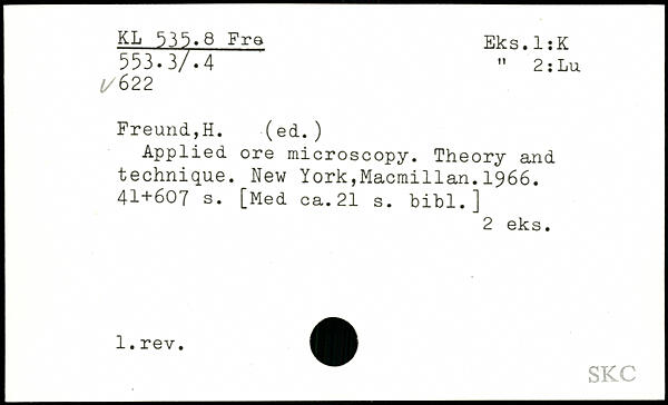 Applied ore microscopy. Theory and technique. New York,Macmillan.1966.