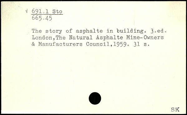 The story of asphalte in building. 3®eds London,The Natural Asphalte Mine-Owners & Manufacturers Council,1959.