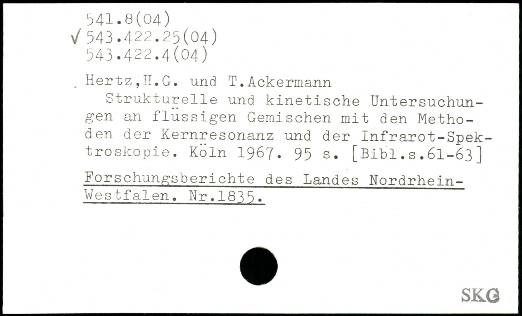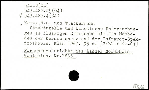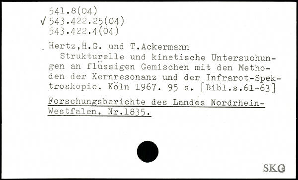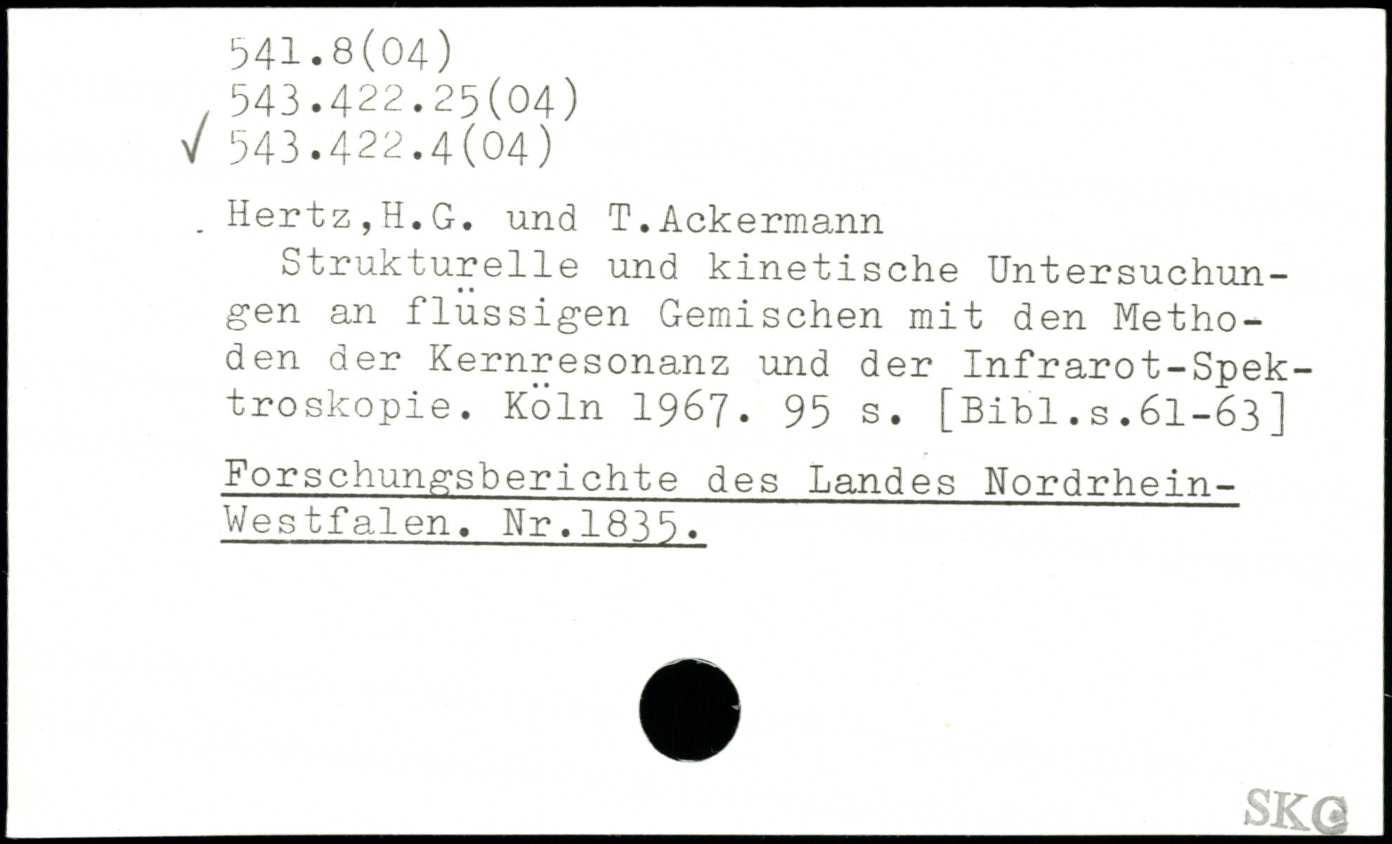 . Hertz,H.G. und T.Ackermann Strukturelle und kinetische Untersuchungen an flüssigen Gemischen mit den Methoden der Kernresonanz und der Infrarot-Spektroskopie.