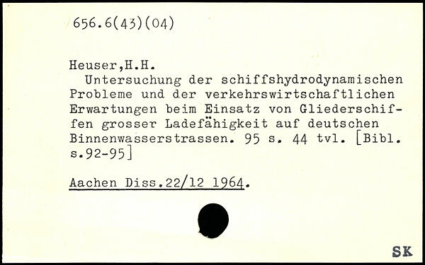 Untersuchung der schiffshydrodynamisehen Probleme und der verkehrswirtschaftlichen Erwartungen beim Einsatz von Gliederschiffen grosser Ladefähigkeit auf deutschen Binnenwasserstrassen.