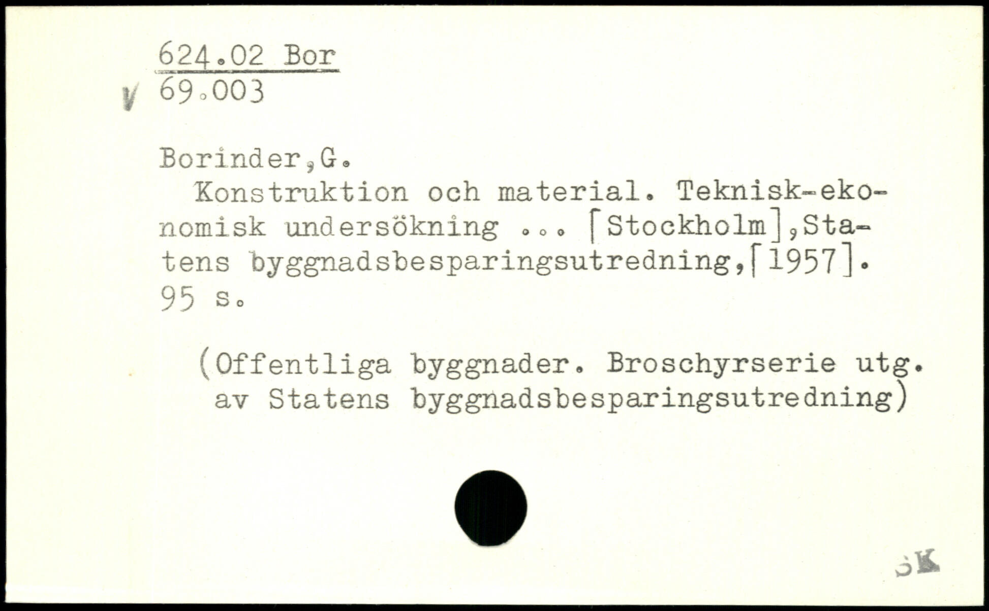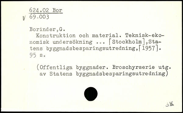 Konstruktion och material. Teknisk-ekonomisk undersökning .,. fStockholmJ,Statens byggnadsbesparingsutredningjf1957].