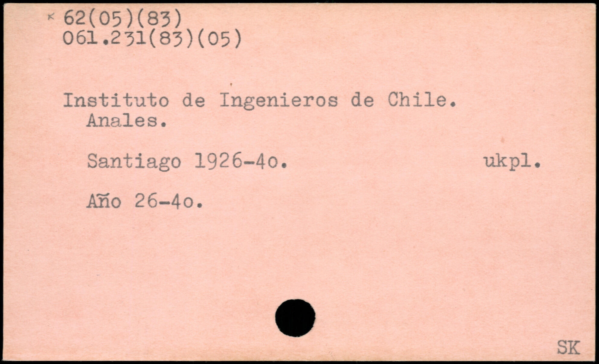 Institute, de Ingenieros de Chile, Anales. Santiago 1926-40. ukpl. Ano 26-4o.