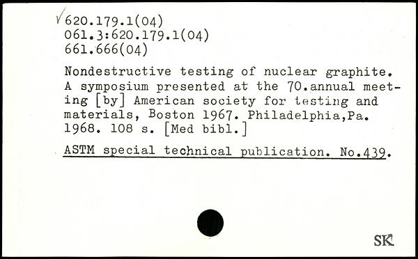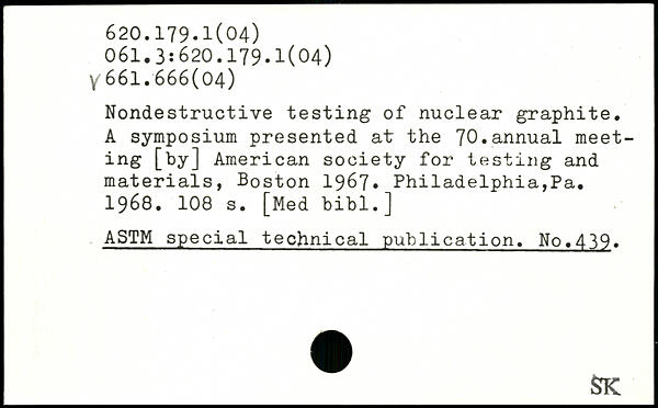 Nondestructive testing of nuclear graphite. A symposium presented at the 70.annual meeting [by] American society for testing and materials, Boston 1967. Philadelphia,Pa. 1968.