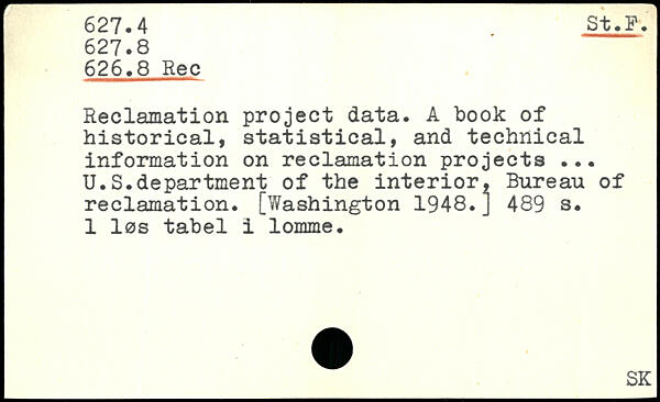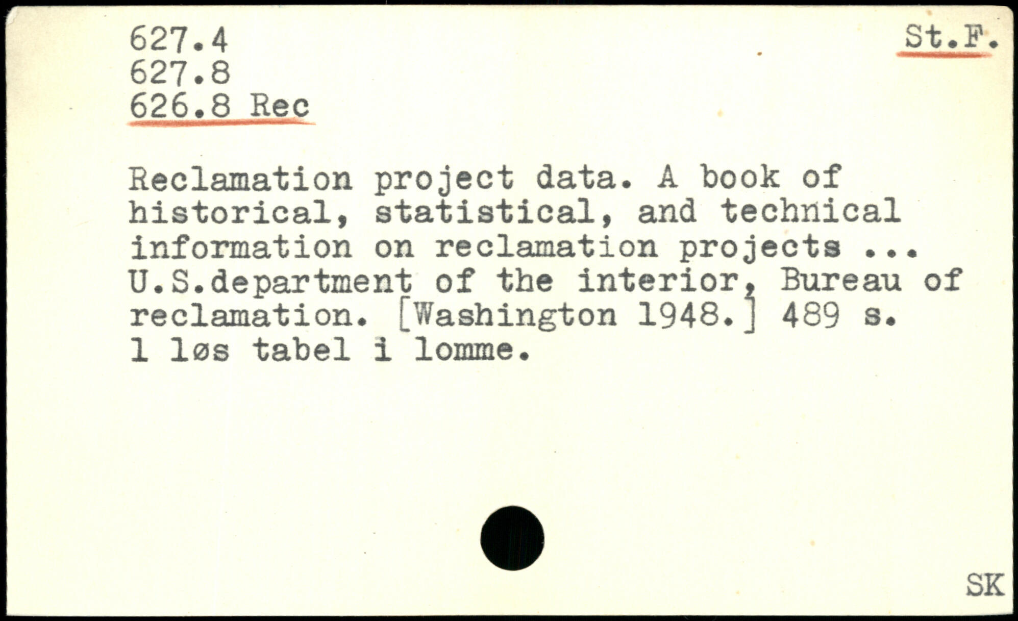 Reclamation project data. A book of historical, statistical, and technical information on reclamation projects U.S.department of the interior. Bureau of reclamation.