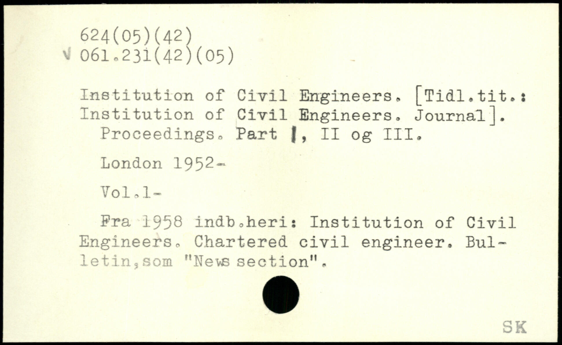 Institution of Civil Engineers, [Tidl.tit.i Institution of Civil Engineers, Journal]. Proceedings, Part f, II og III.