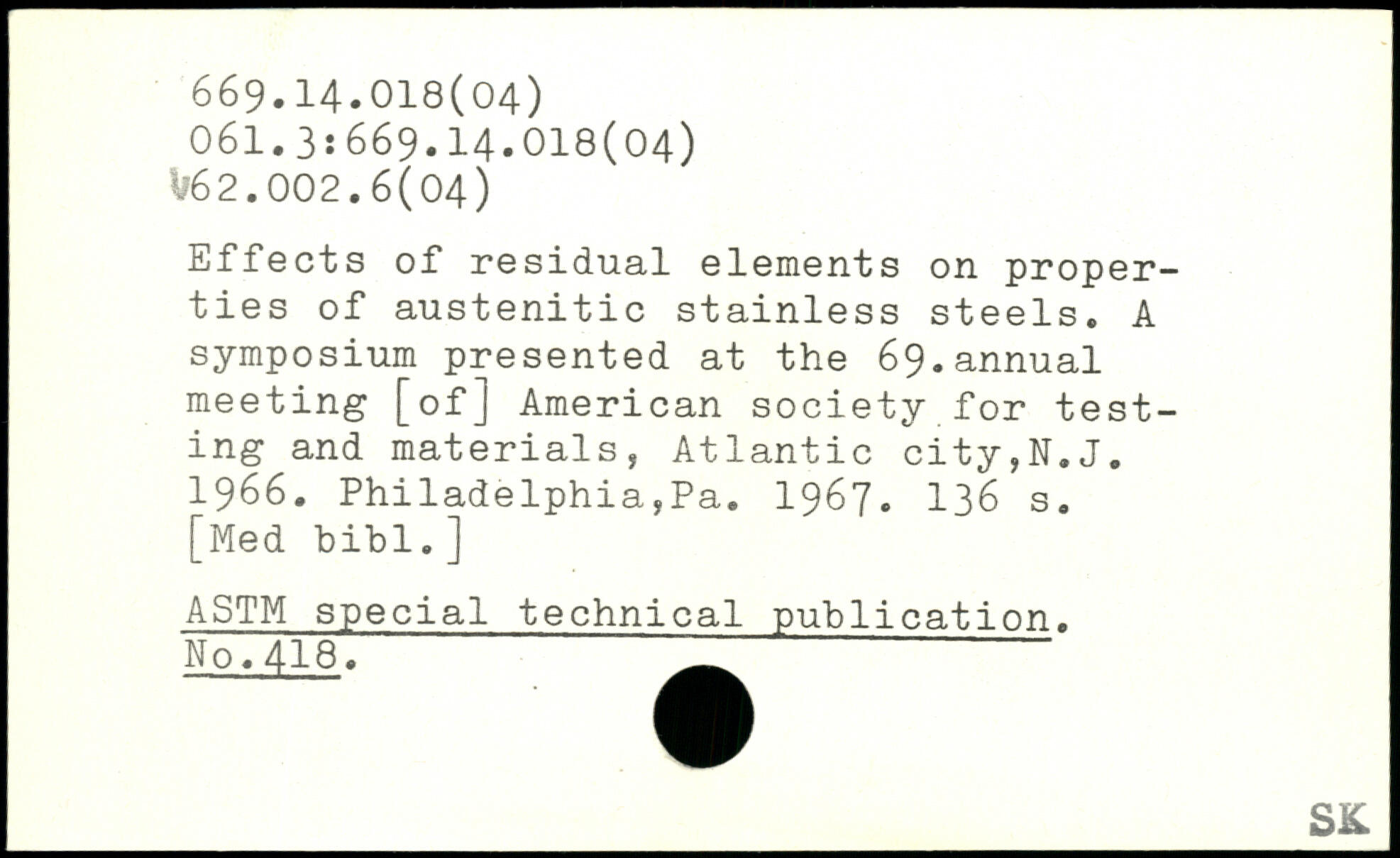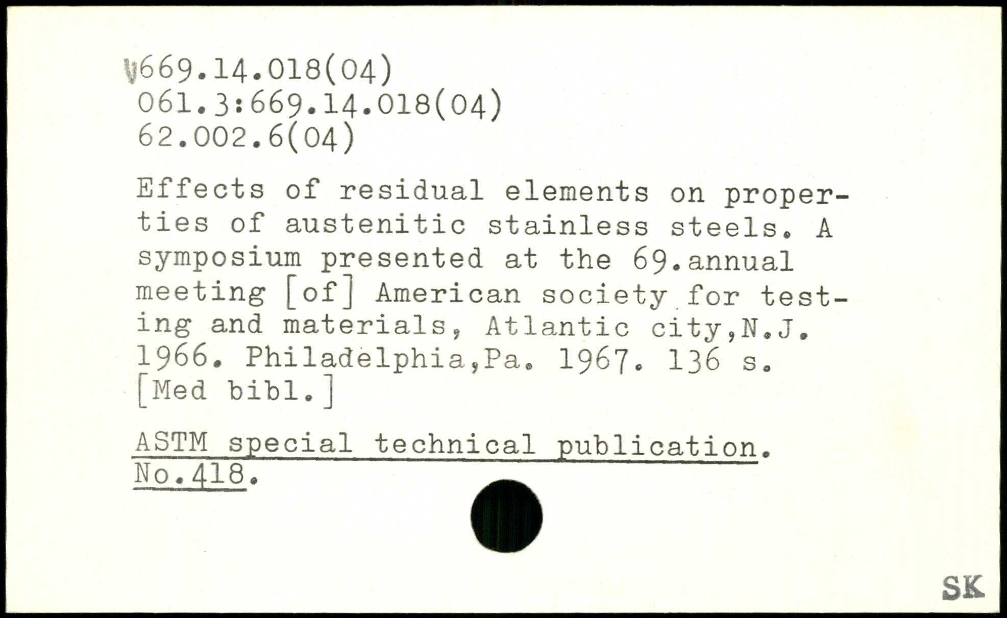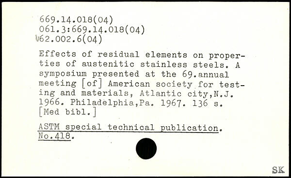 Effects of residual elements on properties of austenitic stainless steels. A symposium presented at the 69.annual meeting [of] American society for testing and materials, Atlantic city,N.J. 1966. Philadelphia,Pa. 1967.