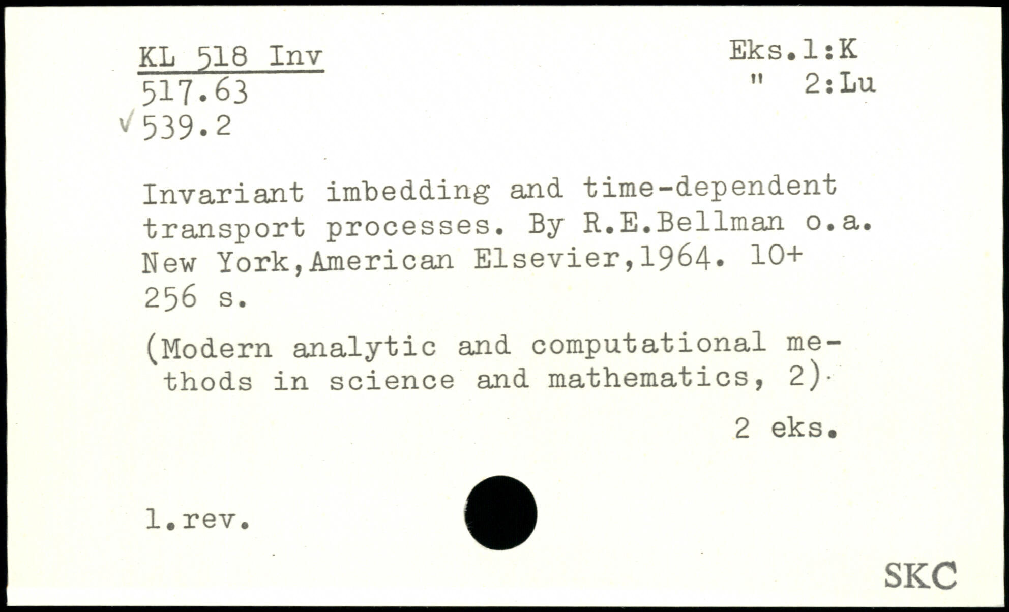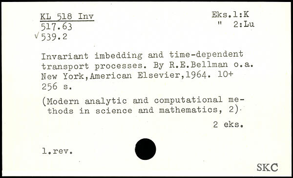 Invariant imbedding and time-dependent transport processes. By R.E.Bellman o.a.