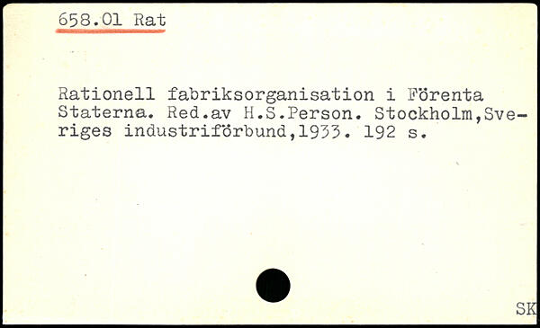 Rationell fabriksorganisation i Förenta Staterna. Red.av H.S.Person. Stockholm,Sveriges industrifÖrbund,1933.