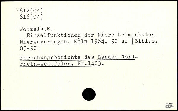 Einzelfunktionen der Niere beim akuten Nierenversagen. Köln 19&4-
