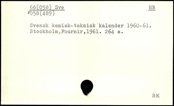 Svensk kemisk-teknisk kalender 1960-61, Stockholm5Fournir,1961.