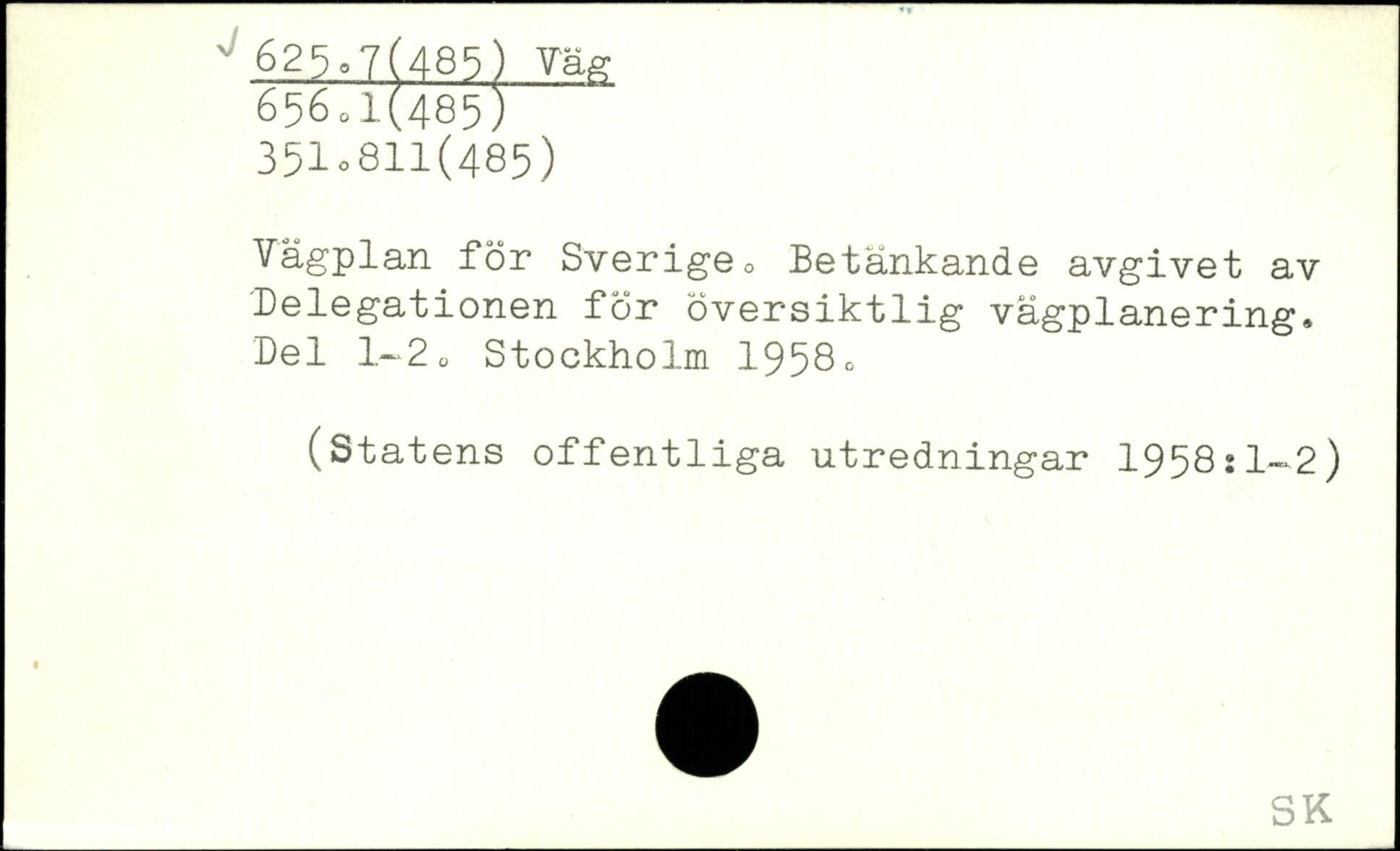 Vägplan för Sverige, Betänkande avgivet av Delegationen för Översiktlig vägplanering, Del 1-2 o