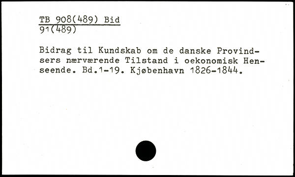 Bidrag til Kundskab om de danske Provind-sers nærværende Tilstand i oekonomisk Henseende. Bd.l-IS. Kjøbenhavn 1826-1844.
