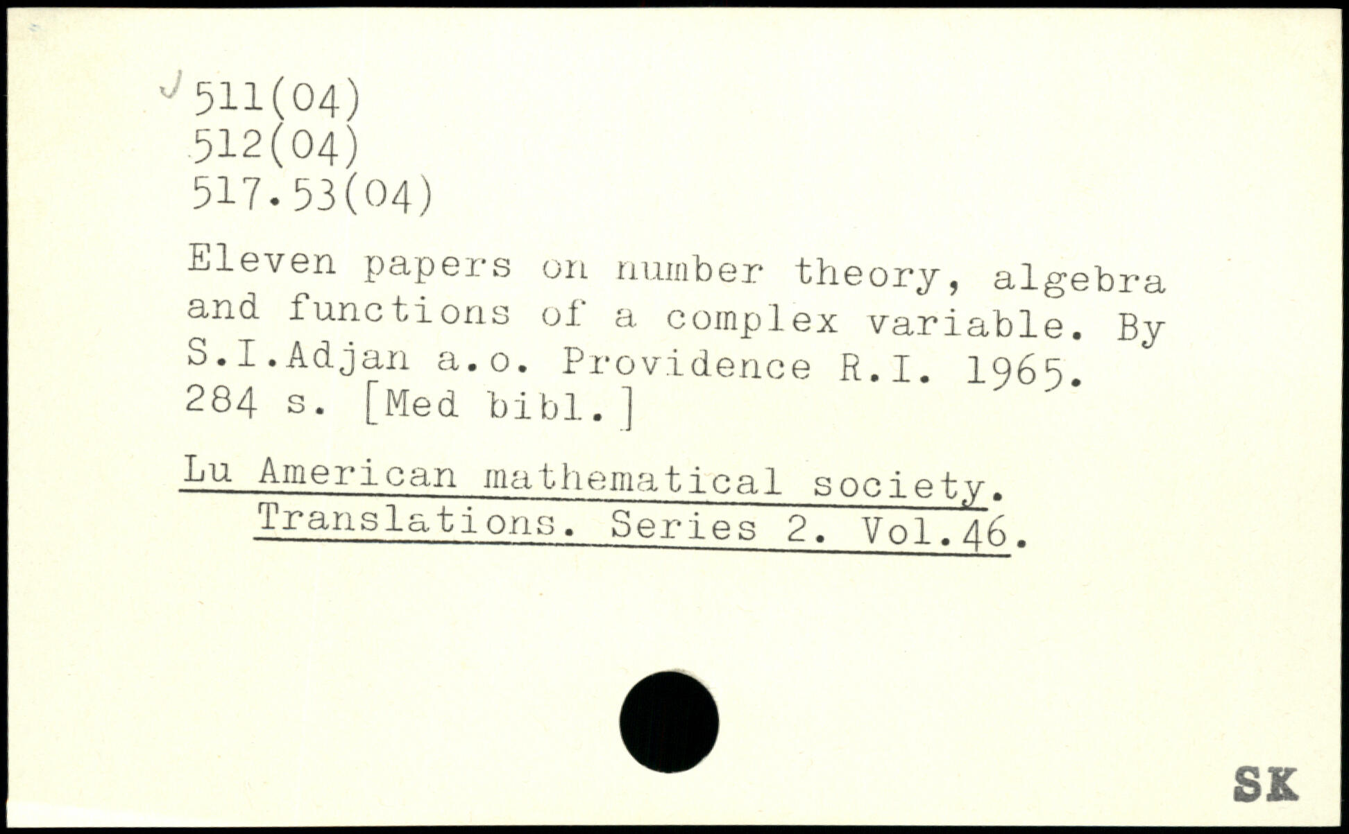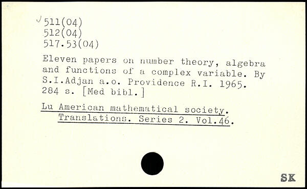 Eleven papers on number theory, algebra and functions of a complex variable. By S.I.Adjan a.o. Providence R.I. 1965