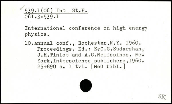 International conference on high energy physics. 10.annual conf., Rochester,N.Y. 1960. Proceedings. Ed.: EcC.G.Sudarshan, J.H.Tinlot and A.C.Melissinos.