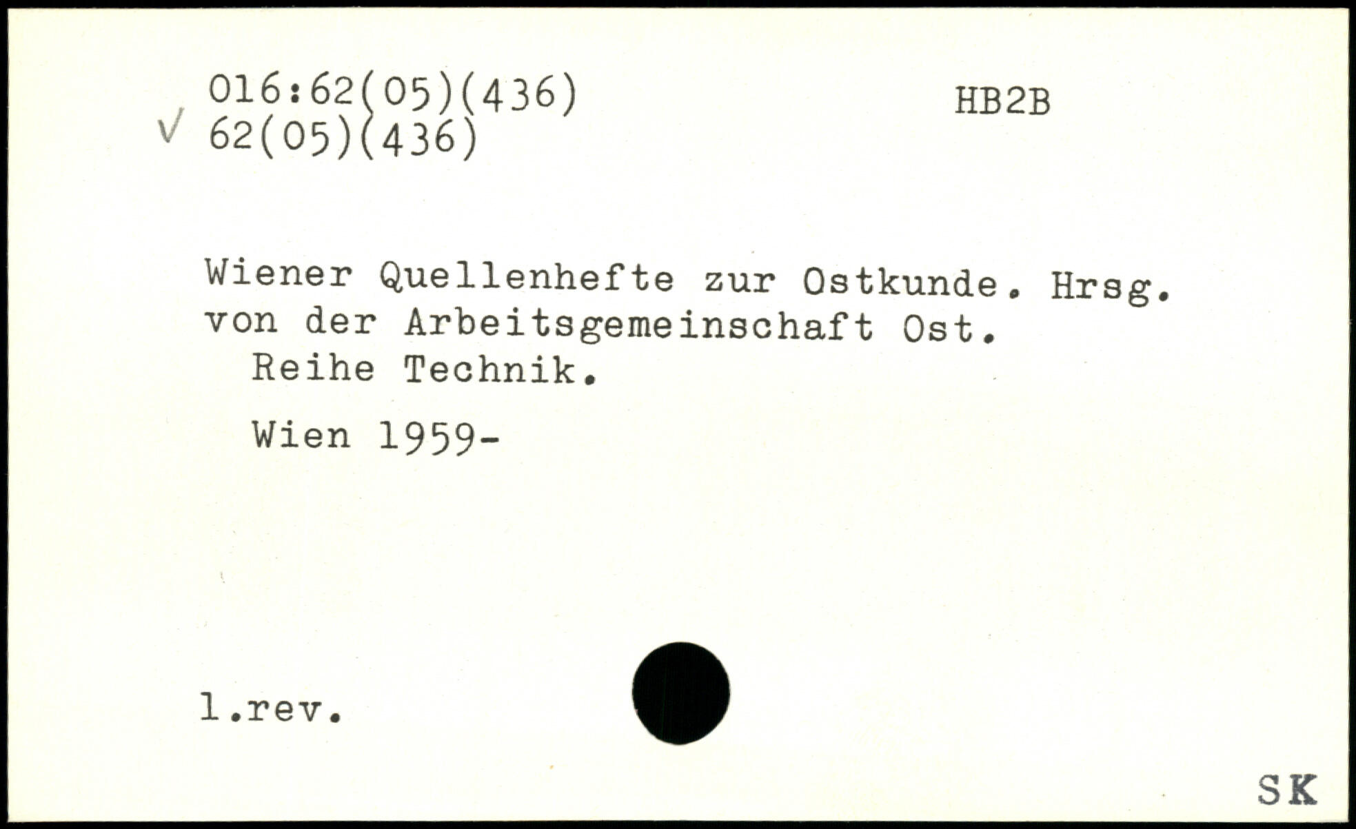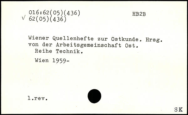 Wiener Quellenhefte zur Ostkunde. Hrsg, von der Arbeitsgemeinschaft Ost. Reihe Technik.
