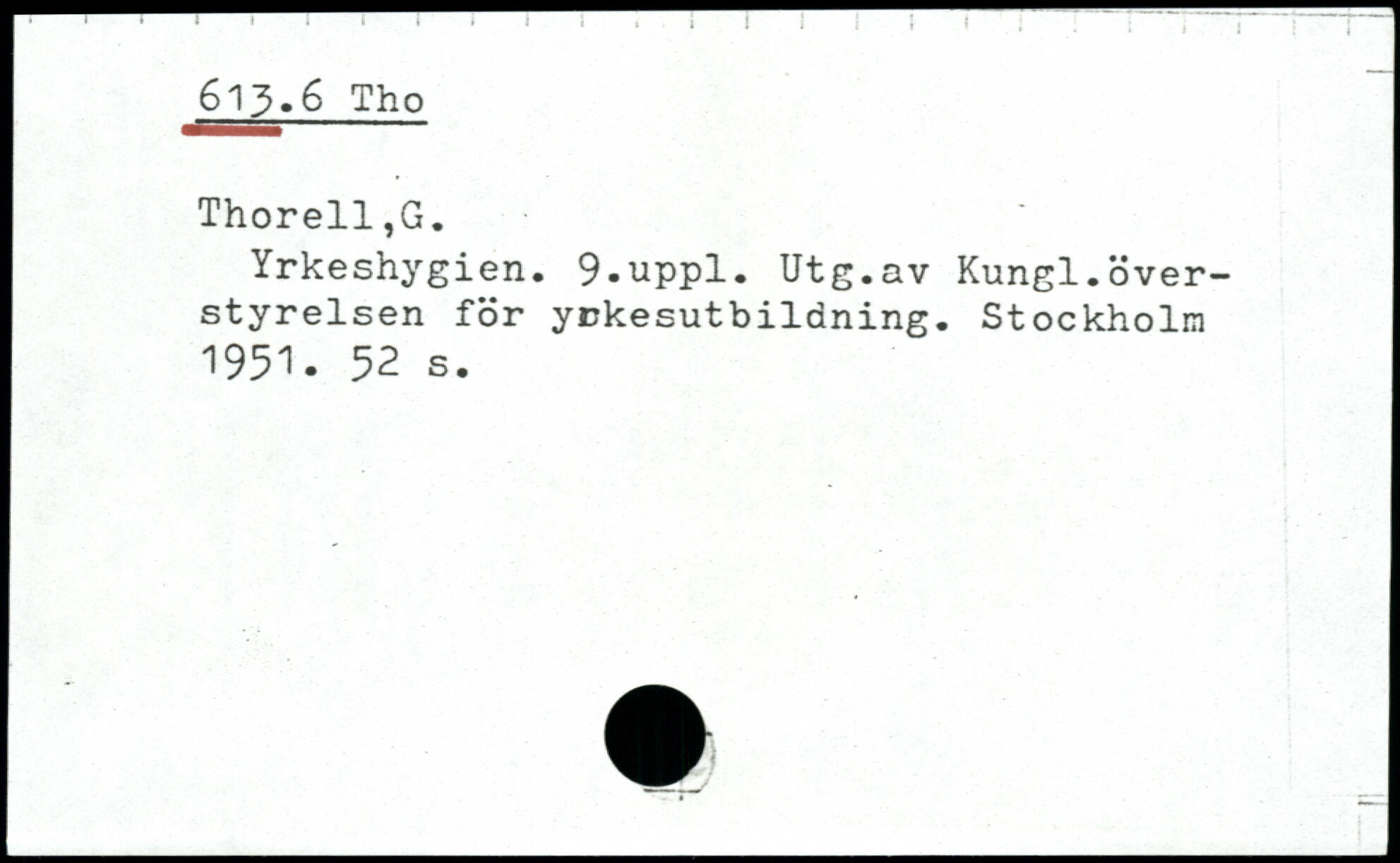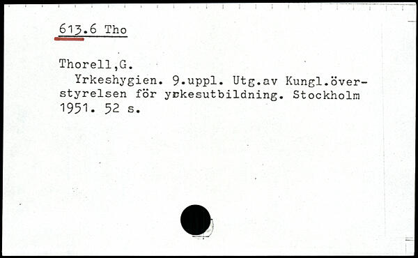 Yrkeshygien. 9-uppl. Utg.av Kungl.överstyrelsen för yrkesutbildning. Stockholm 195'!.