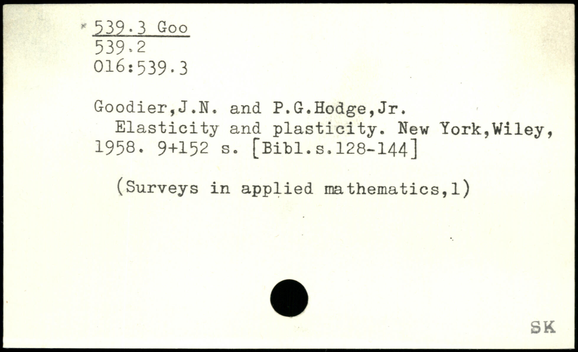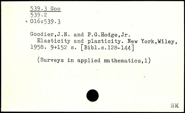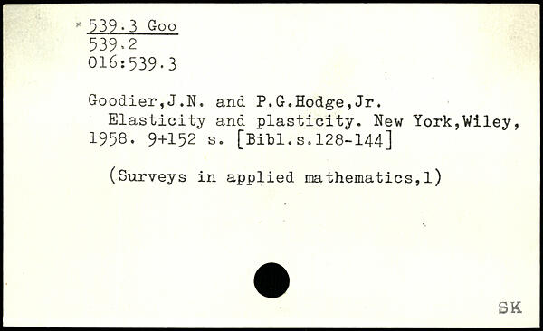 Goodier,J.N. and P.G.Hodge,Jr. Elasticity and plasticity.