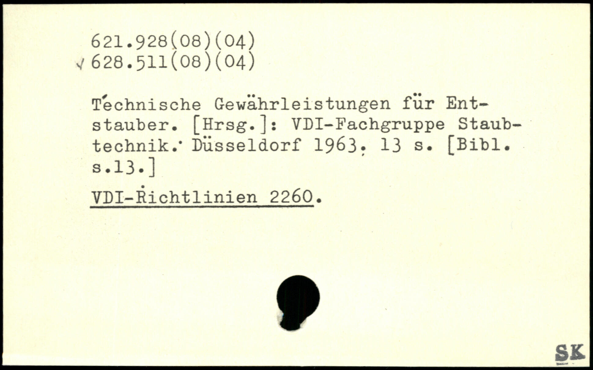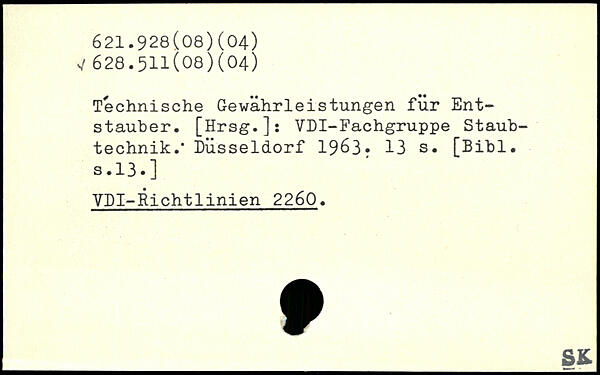 Technische Gewährleistungen für Entstauber. [Hrsg.]: VDI-Fachgruppe Staubtechnik.. Düsseldorf 1963.