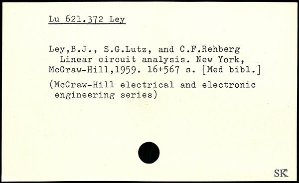 Ley,B.J., S.G.Lutz, and C.F.Rehberg Linear circuit analysis.