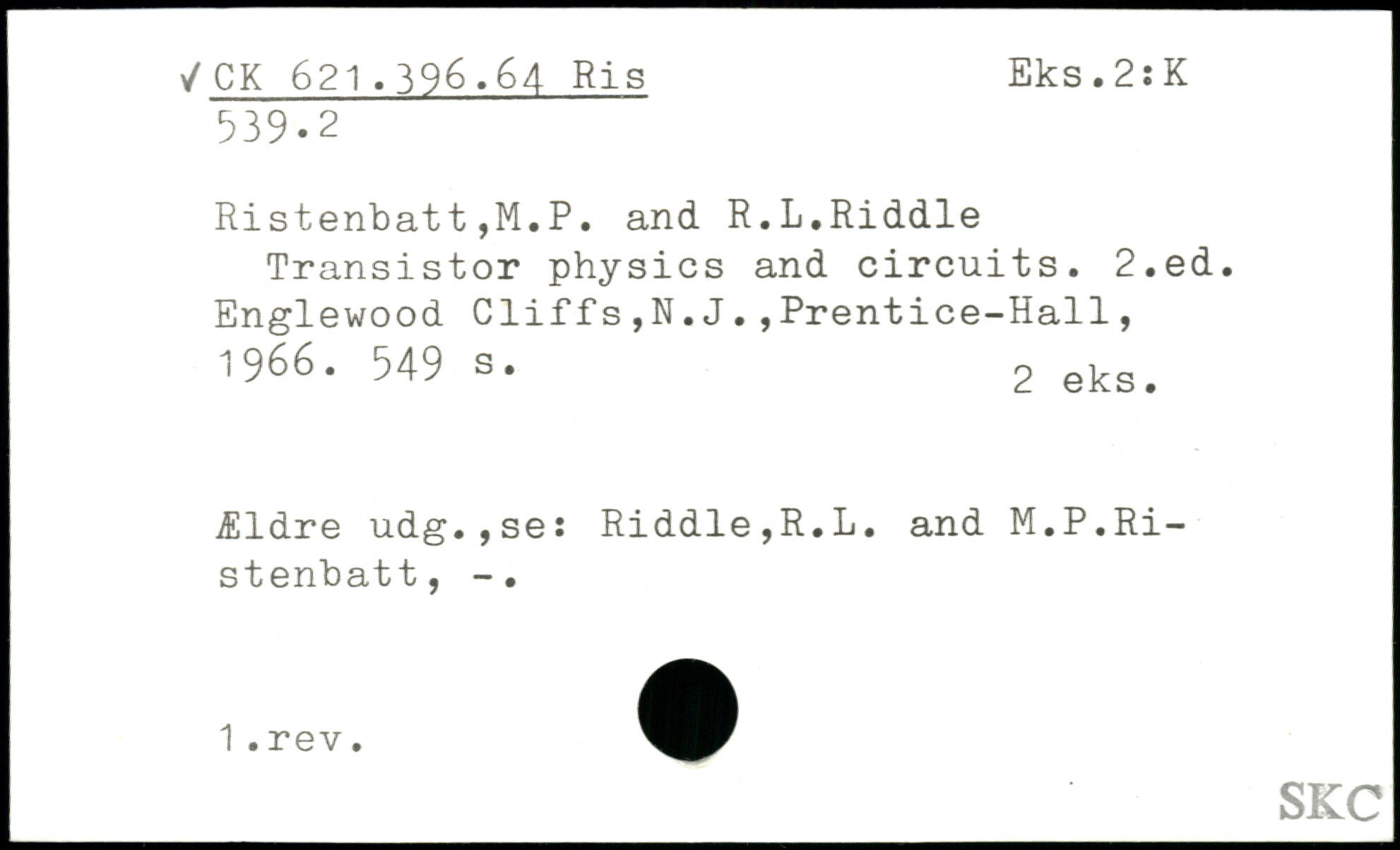 Forfatter: M.P. Ristenbatt, R.L. Riddle