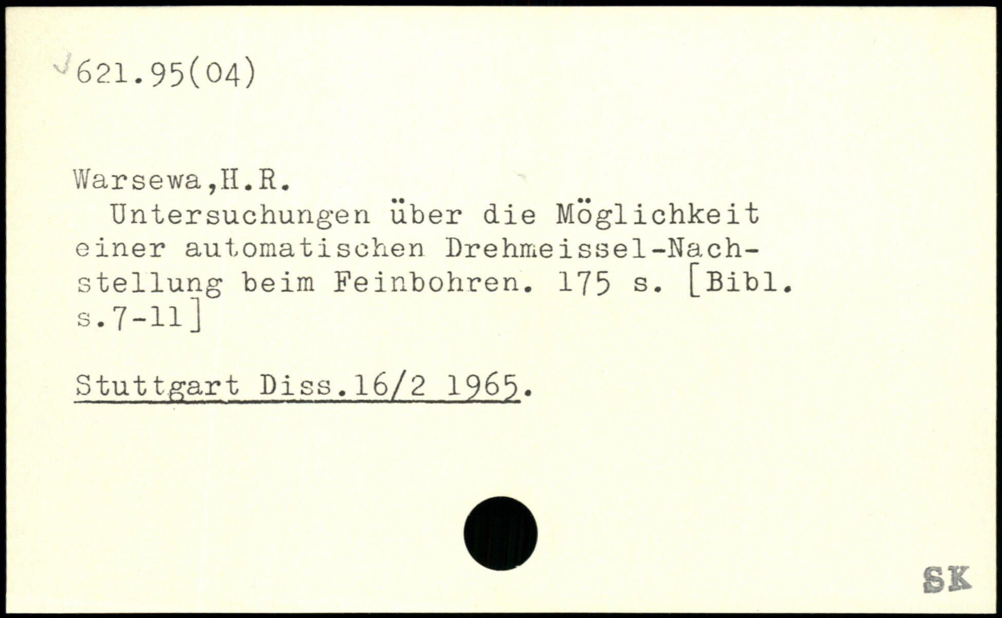 Untersuchungen über die Möglichkeit einer automatischen Drehmeissel-Nach-stellung beim Feinbohren.