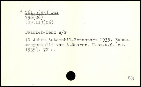 Daimler-Benz A/G 40 Jahre Automohil-Rennsport 1935. Zusam-nengestellt von A,Meurer. U.stoU.ås[ca. 1935].
